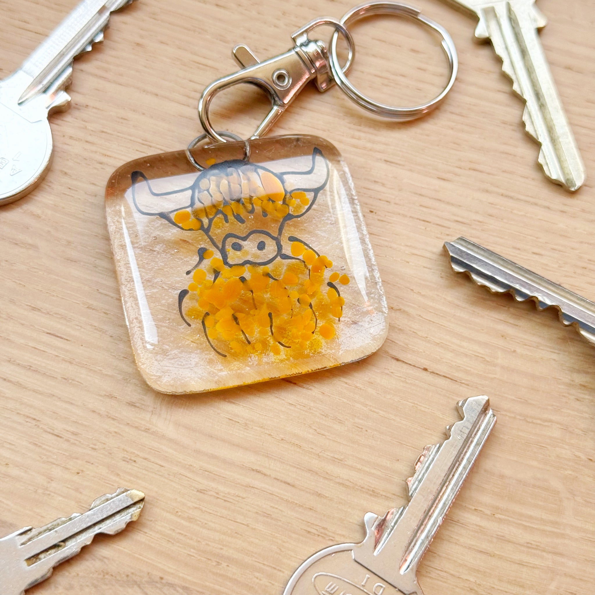 ["cow Keyring","highland","highland coo","highland cow","Keyring","keyrings","Robin gift","Robin Keyring","special gift","wildflower Keyring"]