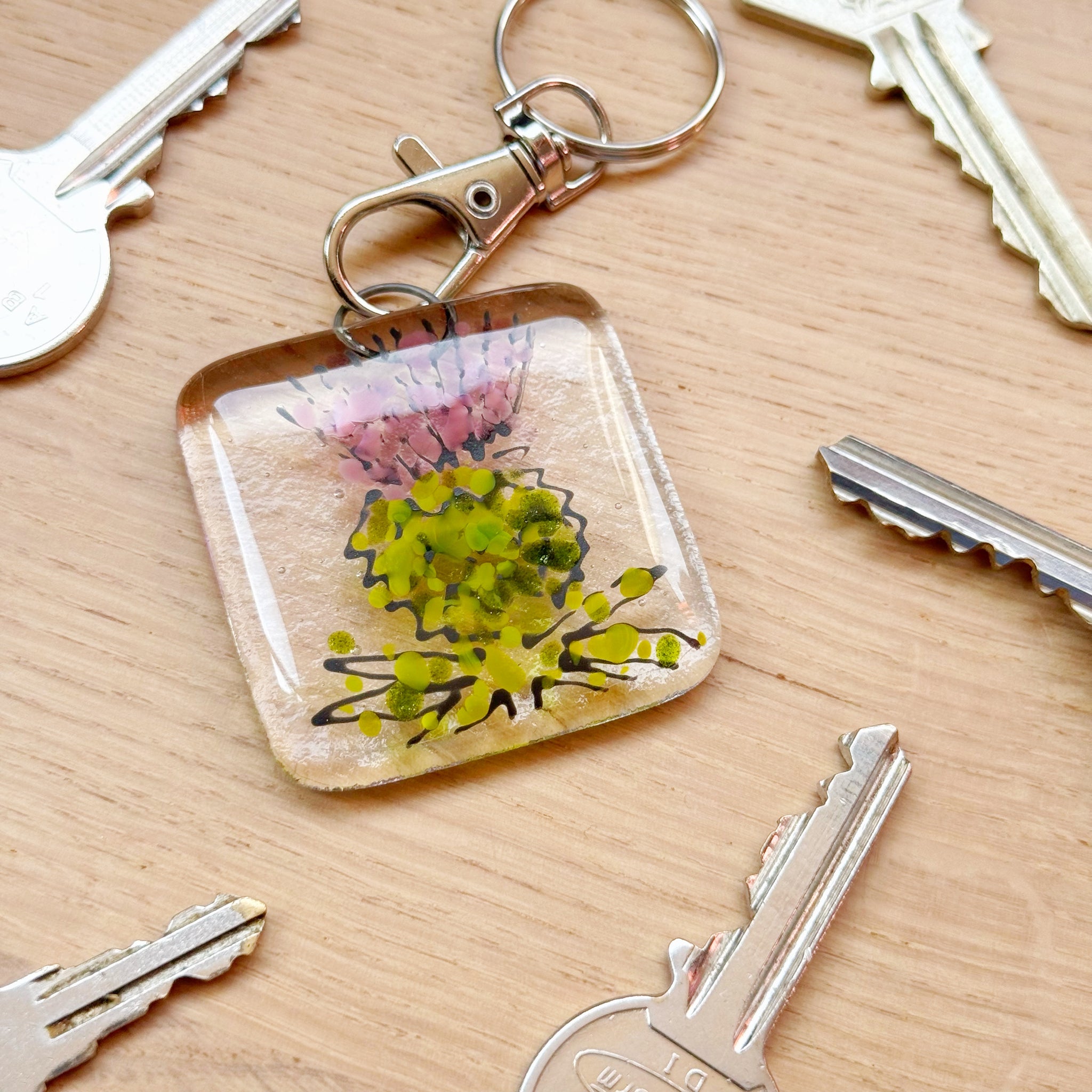 Fused Glass Keyring 40x40mm with lobster clasp.